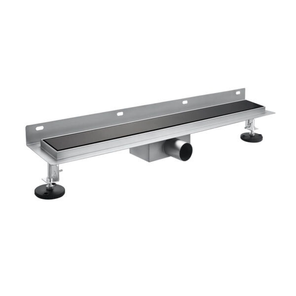 Adjustable Leveling Black Glass Tile In Linear Drain E-G01B