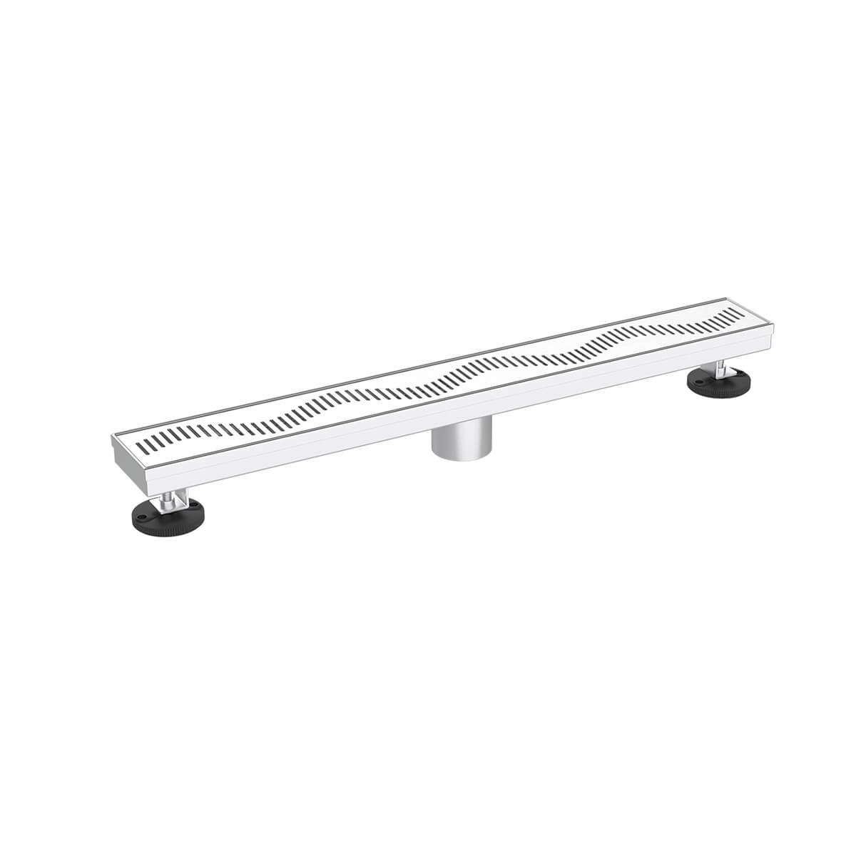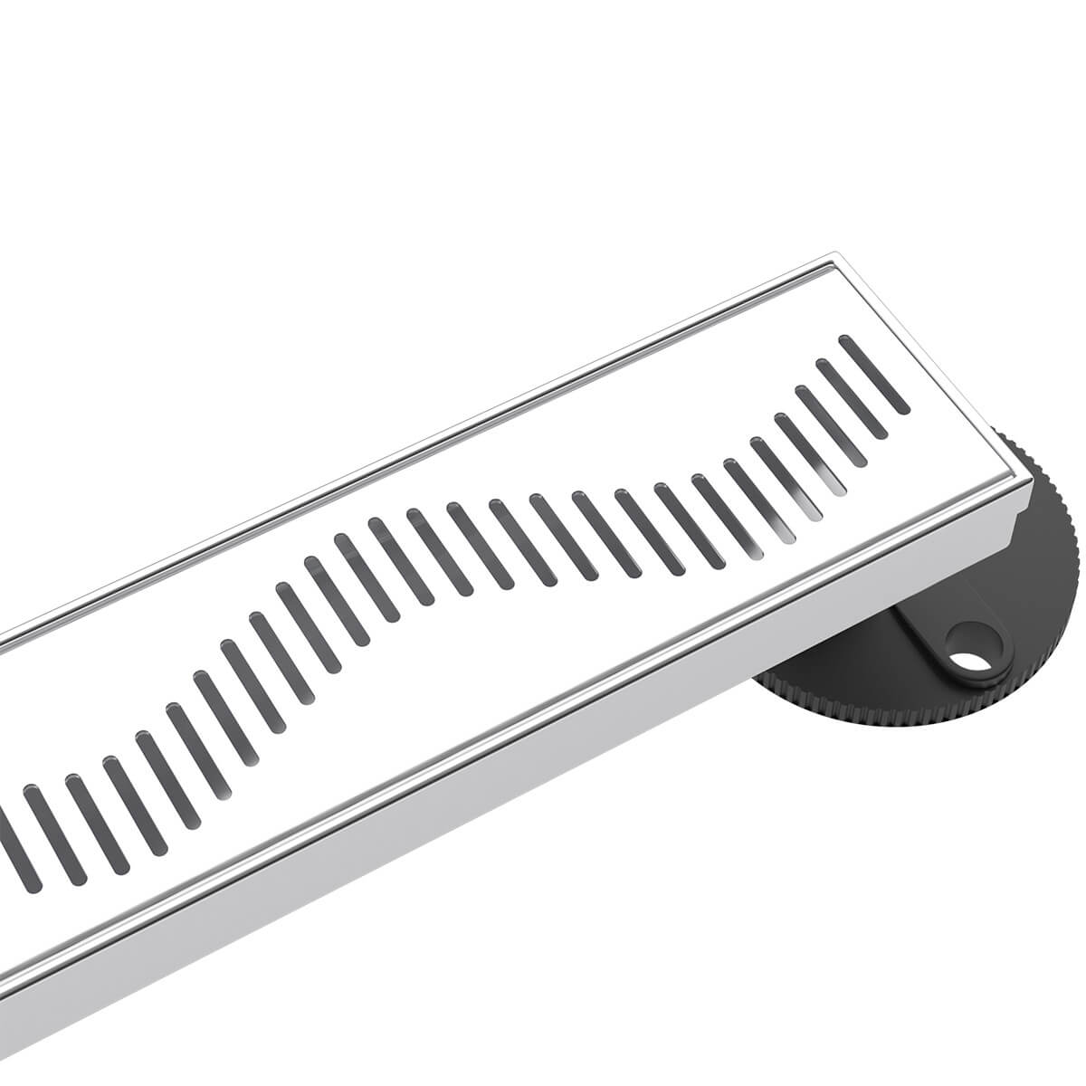 The lines of striped grates are organized in an ordered fashion to guarantee that the shower environment is properly drained.
