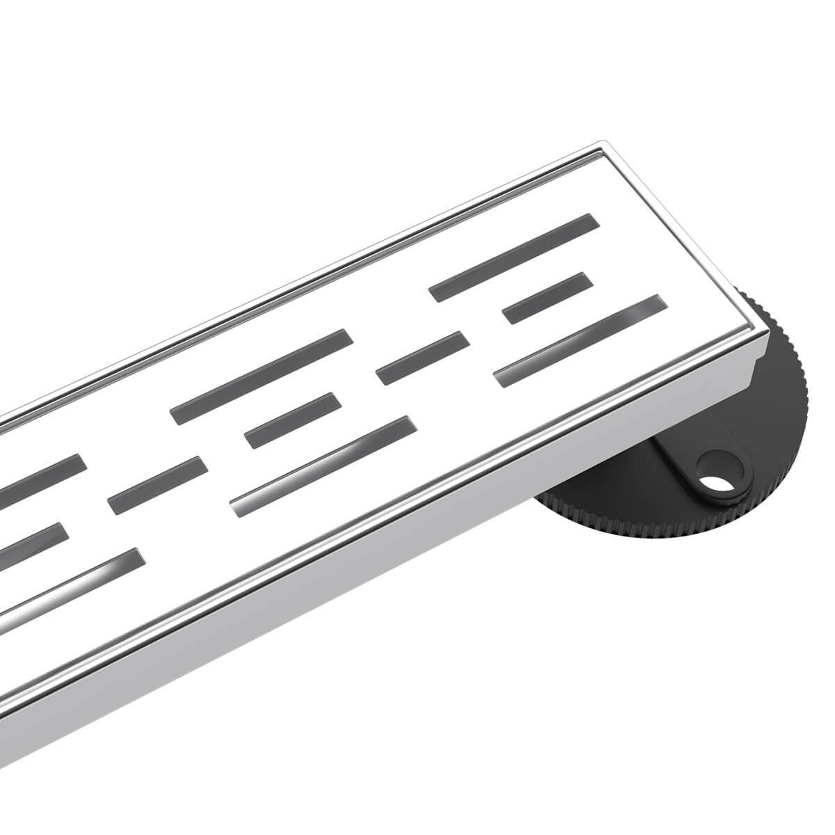 The lines of striped grates are organized in an ordered fashion to guarantee that the shower environment is properly drained.