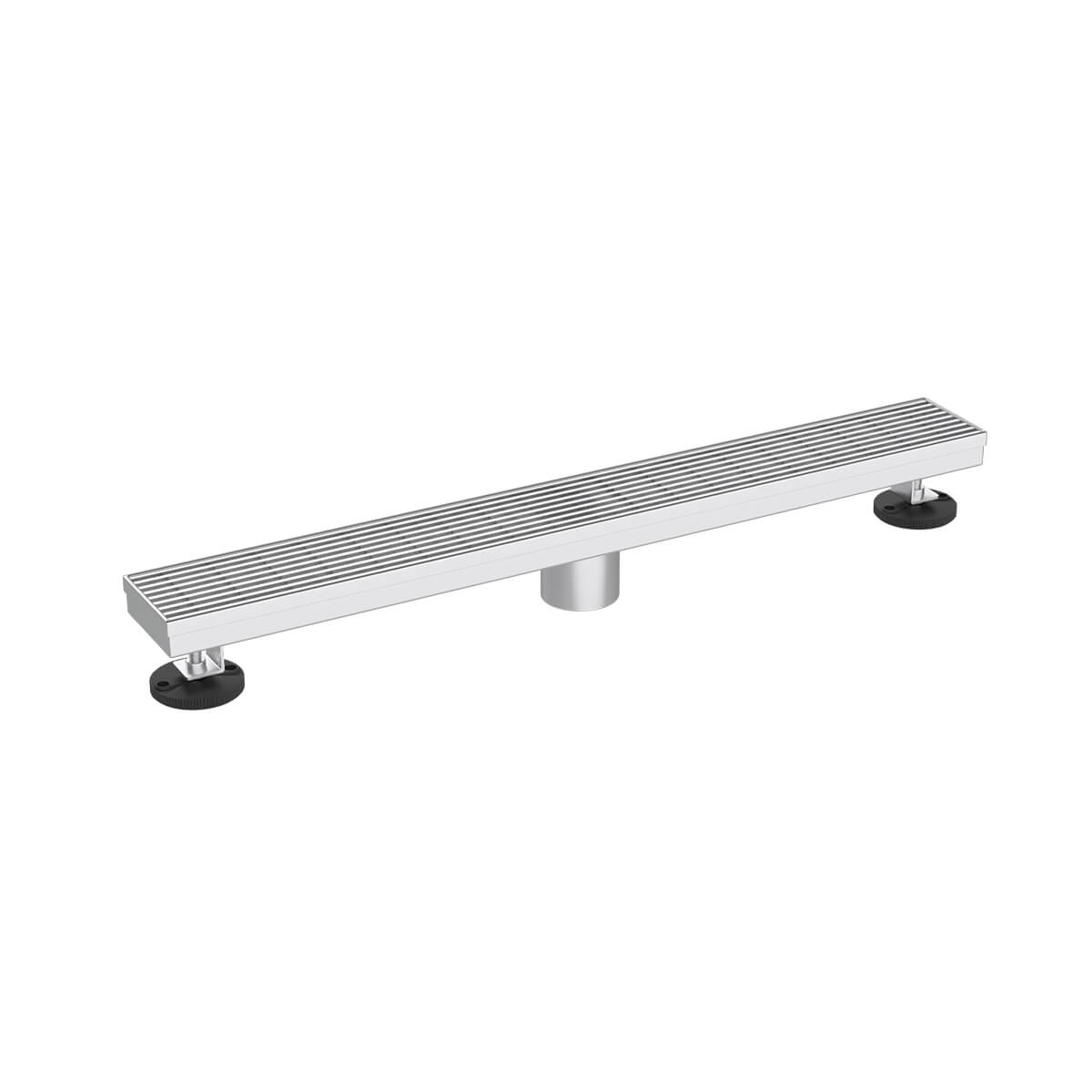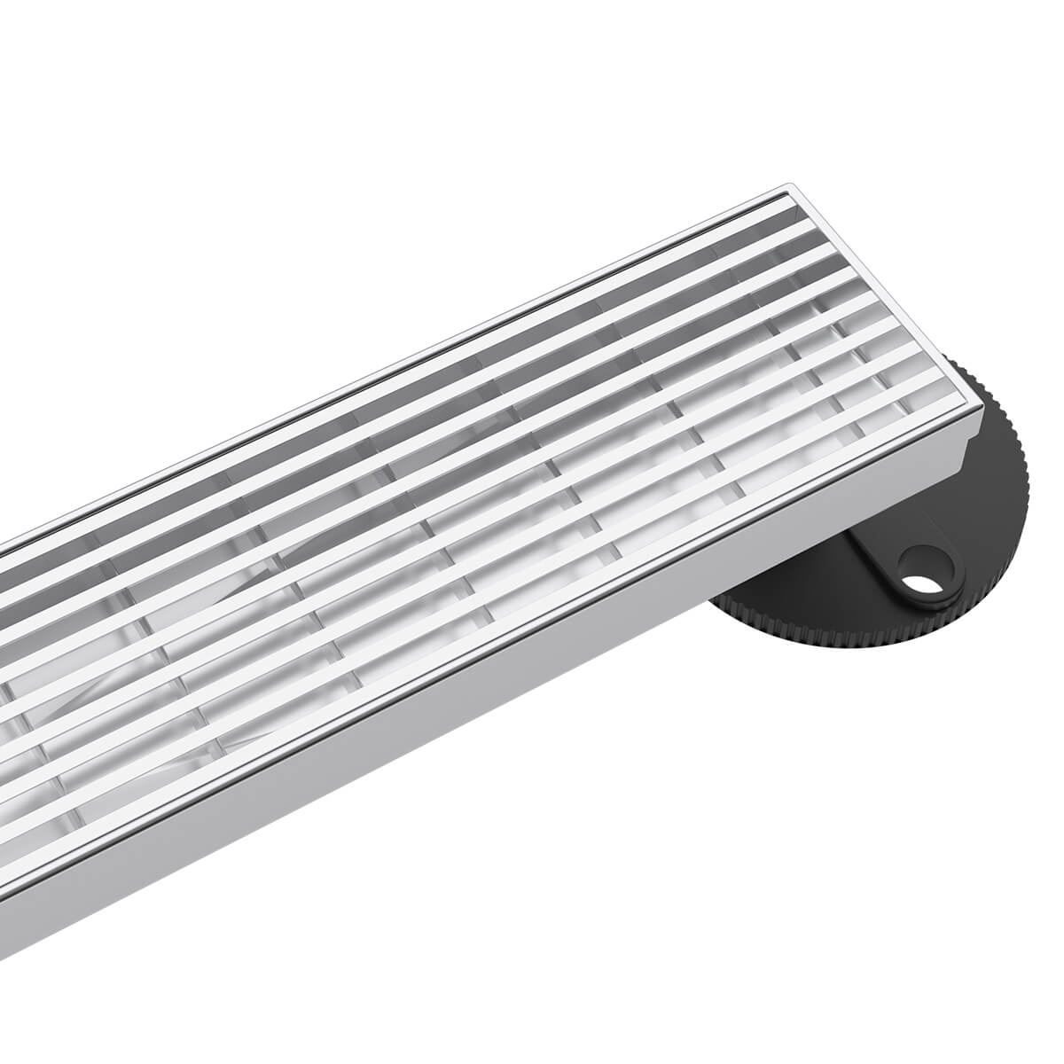 The lines of striped grates are organized in an ordered fashion to guarantee that the shower environment is properly drained.